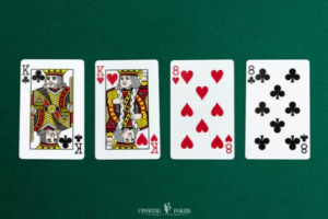 当转牌使公共牌面出现两个对子时(比如K♠K♥8♥8♠),你可能会发现自己处于一个难以驾驭的局面。 你的小葫芦是否最好牌?A高足够在摊牌时取胜吗?你应该将低对(如口袋对4)转变成诈唬…