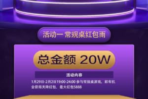 部落先锋二月红包节—常规桌活动现已火热开启,活动时间:1月29日-2月2日 活动一:每天19:00-24:00参与常规桌游戏即有机会获得天降红包,最大红包金额5888;…