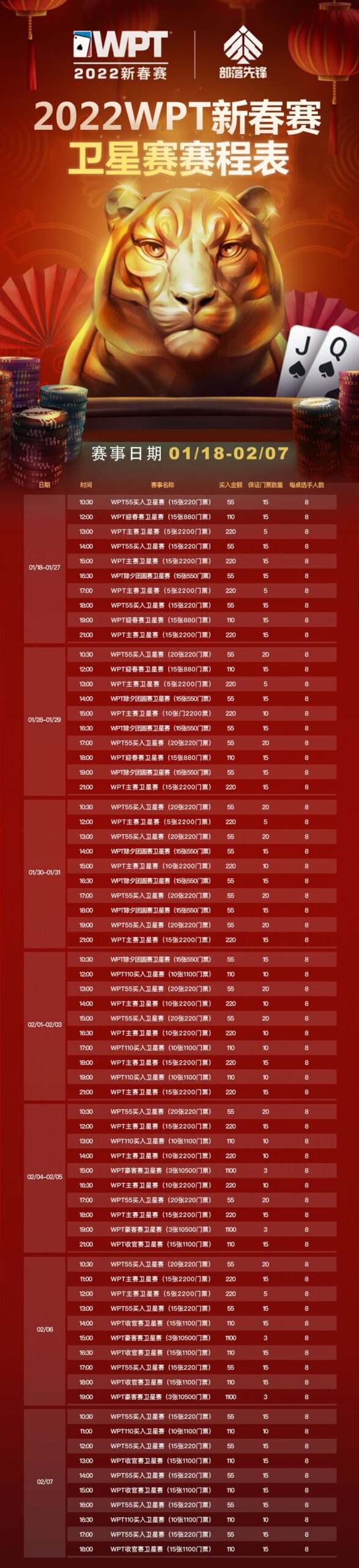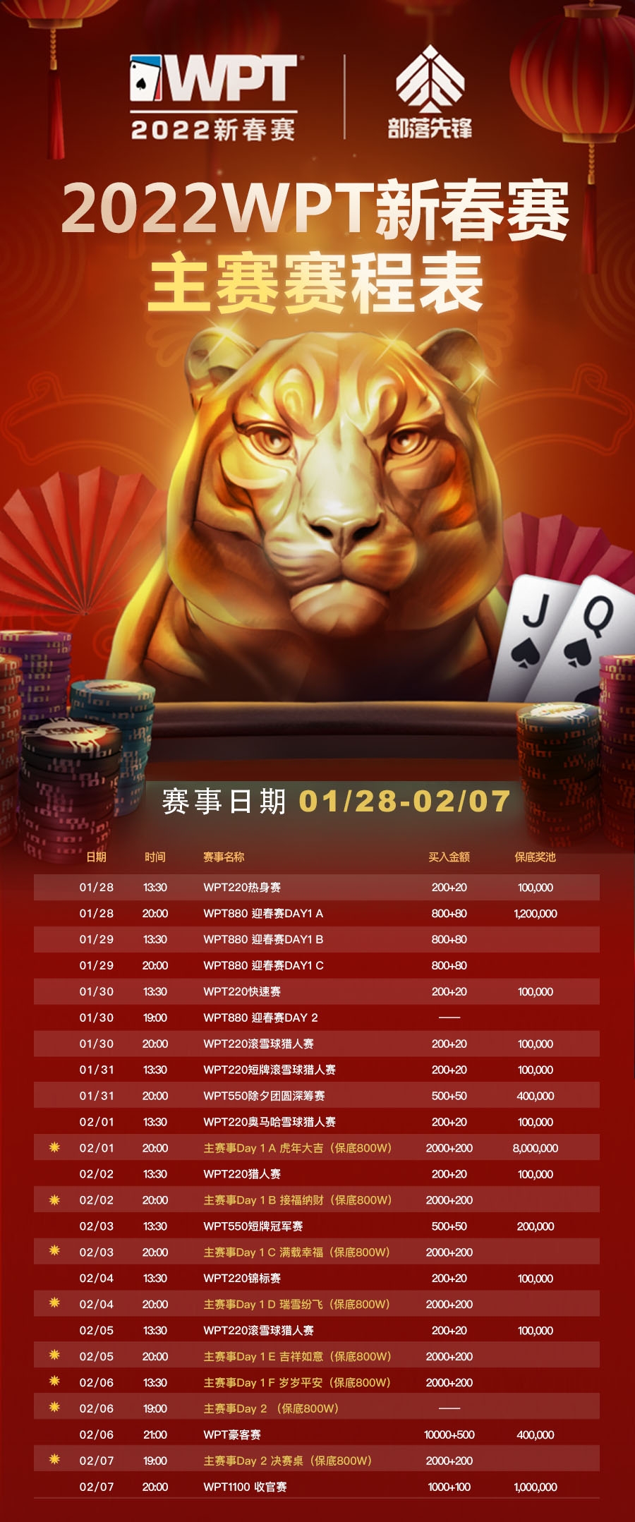 2022年部落先锋与WPT举办的新春赛马上开始了,文中附赛程表