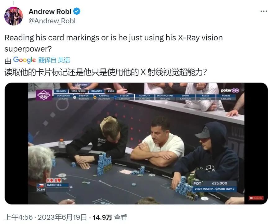 高额桌职业牌手Andrew Robl是第一个对Kabrhel的举动表示质疑的人。