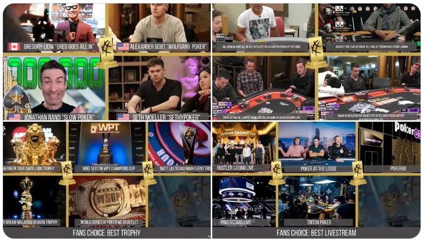 第五届全球扑克奖(Global Poker Awards)日前公布了16个奖项的提名名单。其中有4个奖项将在1月31日前接受粉丝投票,选出最终的获奖者,它们分别是最佳手牌、最佳奖杯、最佳直播节目和最佳扑克风云人物。