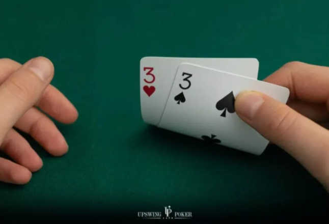 在其他位置:当你身处大盲以外的位置,绝大多数情况下应该弃牌,口袋33太弱了,无法跟注或3bet。但如果是在现场常规局中,有时可以用口袋33跟注,这是因为: