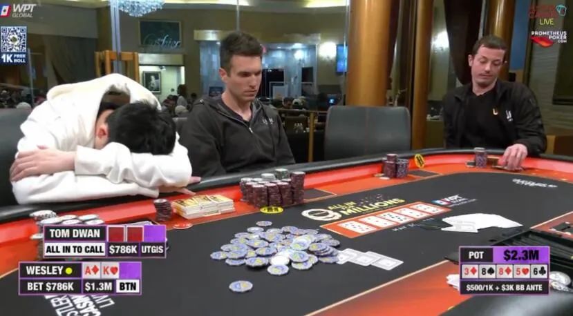 Dwan继续过牌。Wesley知道现在只有下注才能赢,他打了Dwan的后手:$786,000。