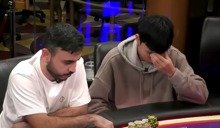 但这手牌的结局早已注定:双方都击中三条,在这样的牌面下筹码几乎不可能不打光。