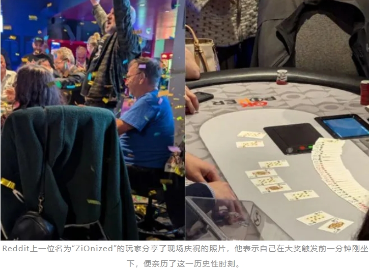 这个幸运时刻不仅让在场的所有玩家都分得一笔奖金,更是载入史册,成为德州扑克历史上第二大的爆冷大奖。