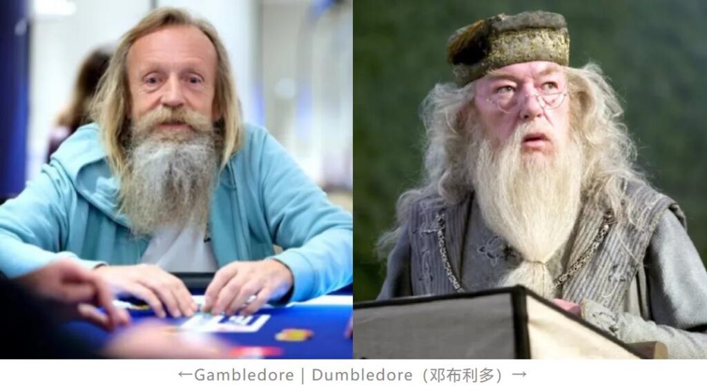这位名叫Vladimir Korzinin的爱沙尼亚玩家,在最昂贵的现场锦标赛上用短短5天时间就收获了一个冠军一个亚军,赢得7,851,000美元的奖金,俘获了全球数千名观众的心。粉丝纷纷把外形神似《哈利·波特》中的邓布利多校长(Dumbledore)的Korzinin称为“Gambledore”。