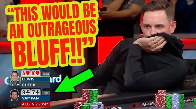 公共牌面出现了对子。击中坚果同花的Lewis过牌,但这时Vampan突然全推228.5W。