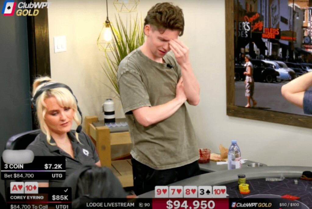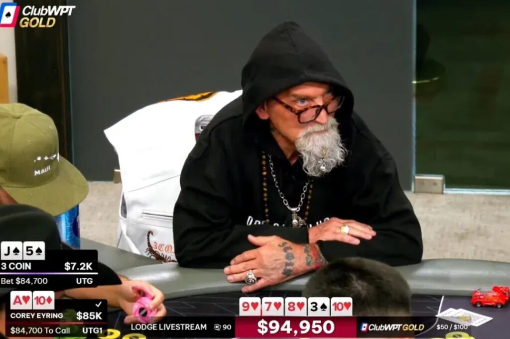 上周日,在The Lodge Card Club举办的$50/$100常规局游戏中,Eyring陷入了一场让他全部身家岌岌可危的噩梦。