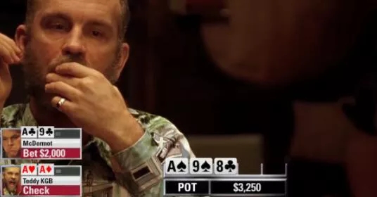 我们可能都记得来自《赌王之王》开篇场景的那个经典牌局,Teddy KGB成功使Mike上套,赢得了Mike的所有筹码。虽然他的慢玩在那种情况下很奏效,但翻前快玩你的最强牌总是更好。