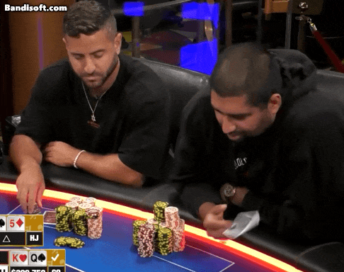 牌局开始时,Guttman拿着5♠5♦开池加注到$1,000。Airball用K♥Q♠ 3bet到$3,000,Guttman 跟注。