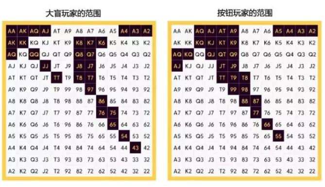 为了进一步论证这种观点,我们来分析下“范围对抗范围”的胜率。例如,我们将从跟注者的范围中排除所有AK组合,并把TT加入到3bet玩家的范围。