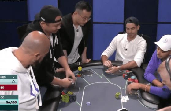 今天这手牌可不是你经常会看到的那种。在Lodge直播桌中,一位玩家河牌全下并被对手跟注后,竟然把自己手中的坚果牌给扔了?!这个可怜的倒霉蛋叫Jay “JWin” Nguyen,是德克萨斯州Lodge Card Club的常客,只因一时眼花,价值近2万刀的底池被他拱手让给了对手Jake。