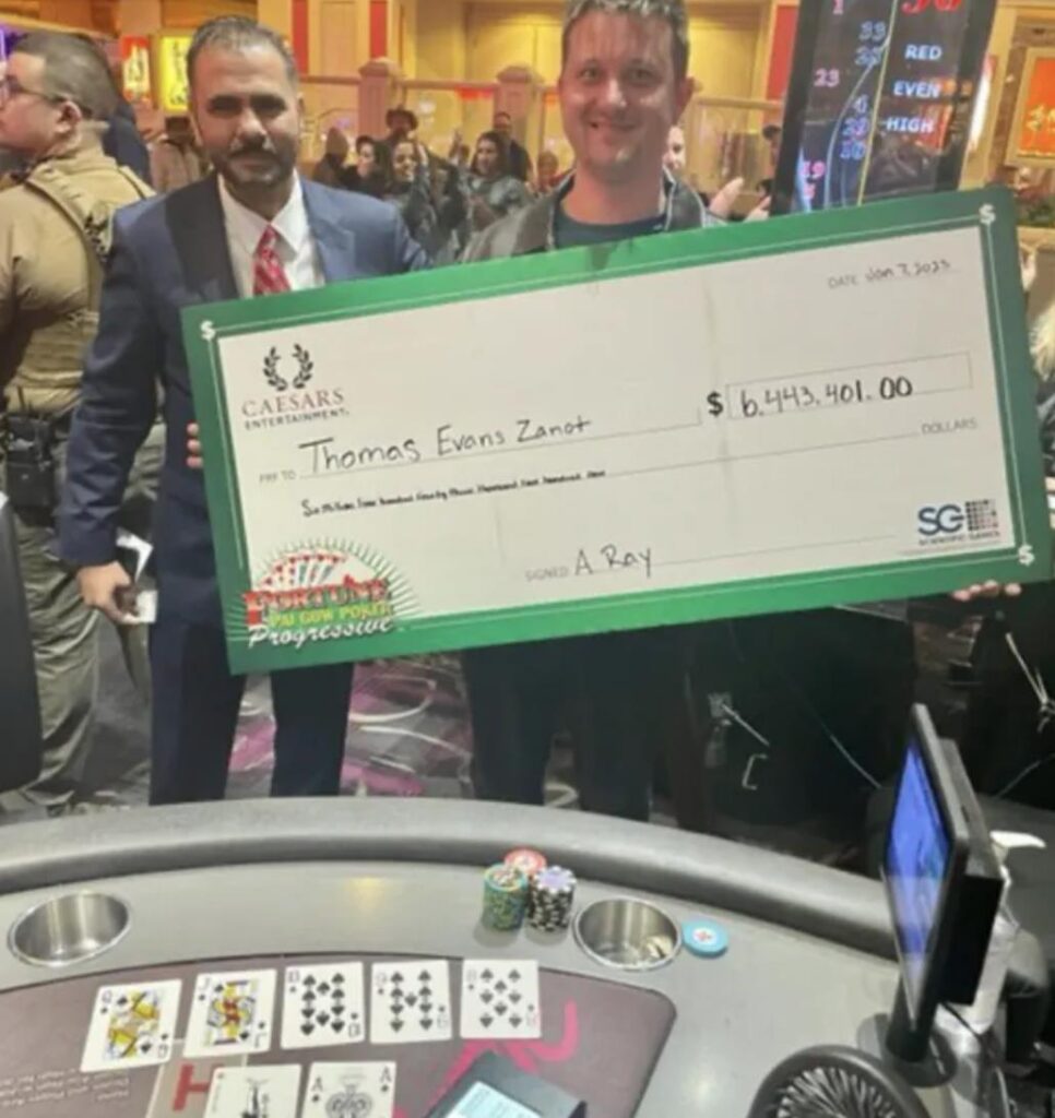 Thomas Zanot目前在WSOP的赛事中有70多个奖励圈记录,但他扑克生涯中最幸运的一次,是2023年1月在拉斯维加斯火烈鸟酒店玩牌九游戏时,凭借一手幸运牌击中了640万美元的累积头奖(jackpot)。