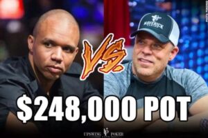 今天我们来看Phil Ivey和娱乐场老板Eric Persson,在Hustler Casino Live扑克秀中打出的一个大底池。 盲注级别:$200/$400/$800/$1…