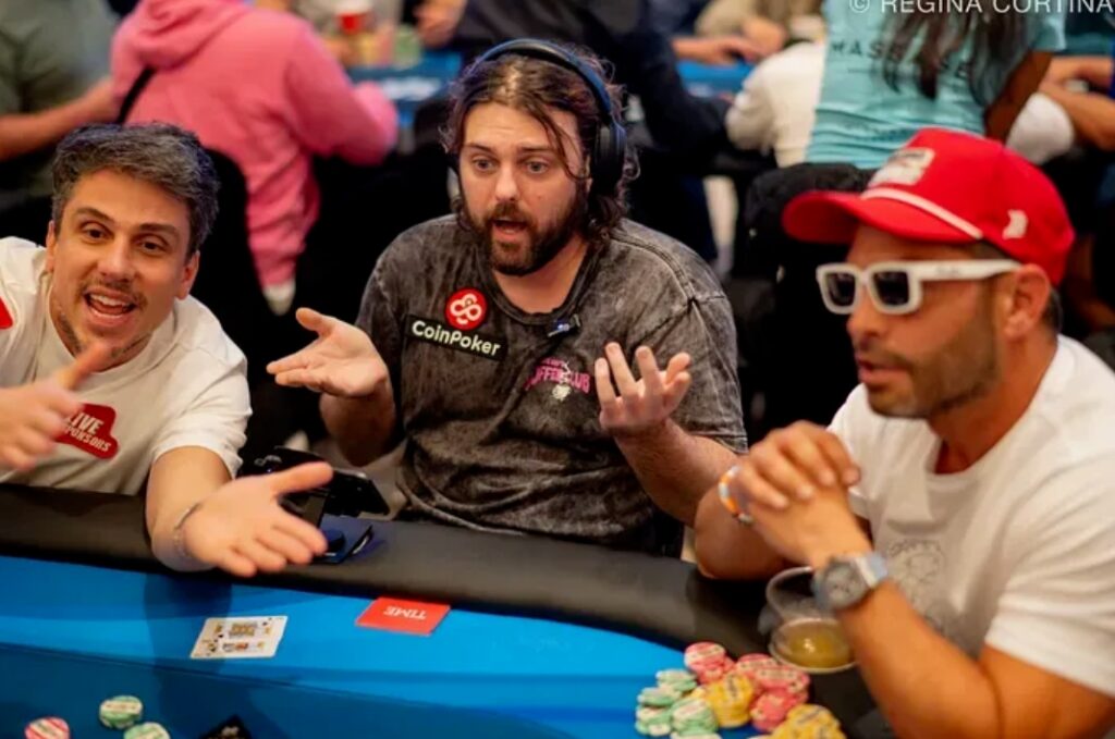 在WSOP天堂岛站$25,000超级主赛Day 2B比赛日,一手混乱手牌引发三位玩家激烈争吵持续近10分钟,现场粗口不断,引来裁判介入。最终,事件主角James Caputo手中的A♦5♦被判定为弃牌,错失本来能够获胜的同花牌面,彻底情绪失控。
