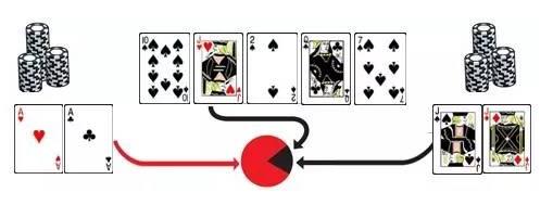 举个例子,我们有AA,翻牌前跟对手打到全进,对手是JJ。不幸的是对手击中暗三,赢下了这个大底池。