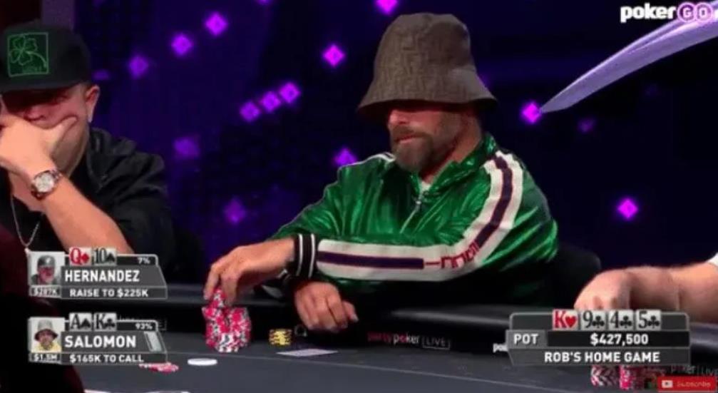 Hernandez下注$200,000。Salomon立刻跟注,拿下了这个$992,500的底池。