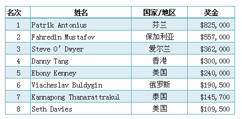 传奇扑克塞浦路斯站25000美元买入豪客赛最终桌结果: