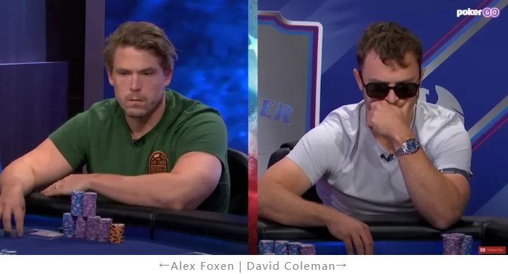 今天这手牌发生在2025年美国扑克公开赛第七项赛事——15,000美元无限注德州扑克的决赛桌上。场上还剩最后6名选手时,Alex Foxen和2024年GPI年度最佳玩家David Coleman展开了一场惊心动魄的对决。