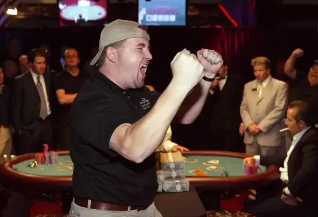 一周之后,他击败839名参赛者,夺得当时规模最大的世界锦标赛冠军,不光赢得250万美元奖金,还直接引爆了全球“线上扑克热潮”,吸引数百万新玩家涌入扑克世界。
