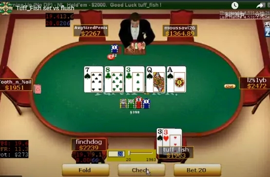 UTG玩家跛入,tuff_fish在CO位置用Q♠J♦加注到20美元。按钮玩家和UTG玩家跟注。