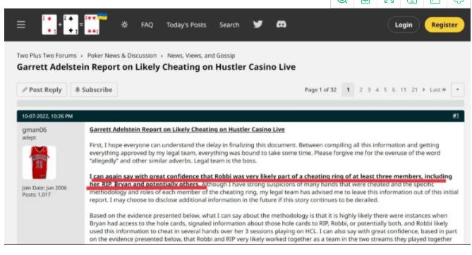 在报告的一开始,盖哥就直截了当地抛出结论:“我可以再次充满信心地说,Robbi很可能是一个作弊团伙中的一员,这其中至少包括了她、RIP、Bryan三人,可能也还有其他成员。”