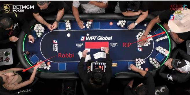 首先用一张图跟大家说明一下Robbi和RIP两人当晚在牌桌上的位置:
