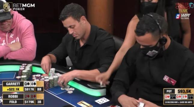 视频1:52:59处,可以明显的看到Robbi做了一个“jack eight”的口型,而这恰恰是她刚刚在和盖哥的对局中弃掉的底牌。