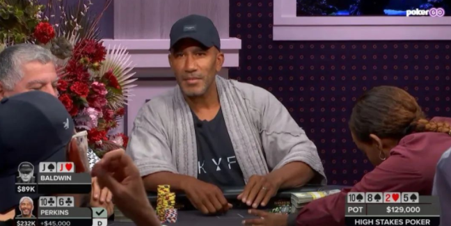 Perkins加注到$60,000,假装自己击中了同花。出人意料的是,Baldwin迅速弃牌了。Perkins凭借适时的诈唬拿下了这个$129,000的彩池。
