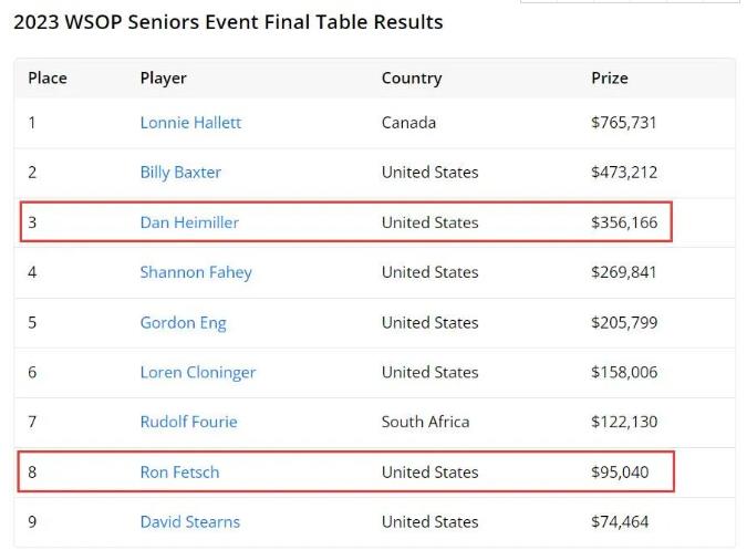 当时牌桌上只剩下8位选手,Fetsch的筹码量排名第二,Heimiller排名第三,两人都是深筹码。