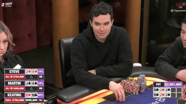 Keating赢下了这个$2,082,000的本场比赛最大底池。