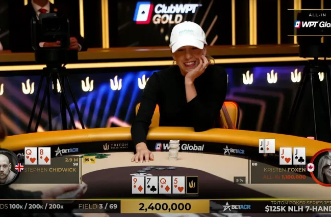 在韩国济州岛举办的Triton超级豪客赛系列赛中,加拿大女牌手Kristen Foxen凭借在$125,000七人桌无限德州扑克赛事中夺得第三名,收获奖金1,104,000美元。这一成绩让她的现场锦标赛累计奖金达到$12,183,462,正式超越Vanessa Selbst,成为扑克历史上奖金最高的女性选手