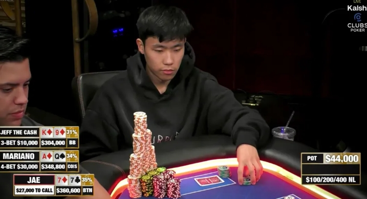 Hustler Casino Live节目的一位新玩家Jae Cusick,在$100/$200/$400的牌局中打到仅剩$23,000筹码时展开疯狂反击,竟成功令手中的筹码飙升至超过$500,000。