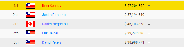 根据知名扑克成绩追踪网站The Hendon Mob显示,Bryn Kenney是扑克历史奖金榜的第一人,奖金高达5720万美元,虽然目前只领先第二位的Justin Bonomo1万美元,但是这样的成就,在扑克圈堪称神级表现。但正因如此,也使得这次的爆料足够劲爆,简直要撼动整个扑克圈。