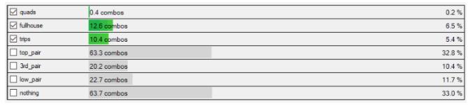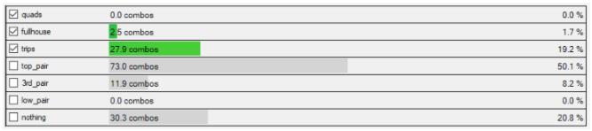 你可以看到大盲玩家明三条及更好牌大约是按钮玩家的两倍。没有在这张图显示的是,他也有很大的胜率优势。