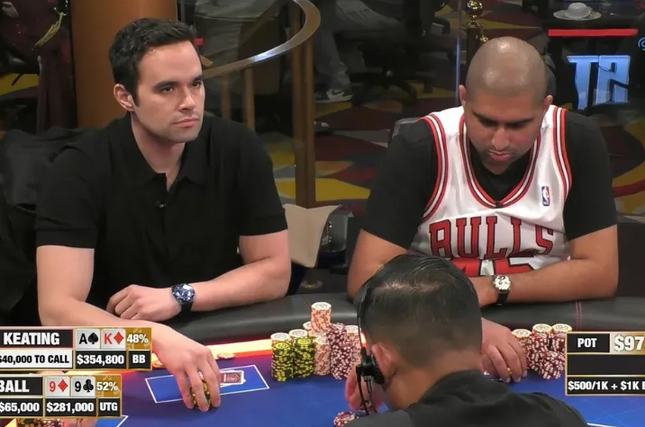 谈到面对Keating的5bet时,Airball回忆说:“当我看到他摞出加注筹码时,就感觉不妙。但Alan的诈唬能力太强了。我仔细考虑了翻牌前的所有行动,但最后想想,如果我在这里弃掉99,而它其实是领先的话,我会无法原谅自己。于是决定跟注,要么躲过A/K,要么直接出局。