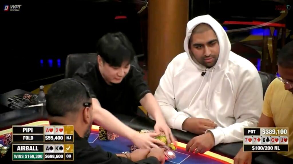 当晚,Airball成为了最大赢家,赢利$269,900,而Pipi虽然错失这手大牌,最终还是盈利 $87,600。