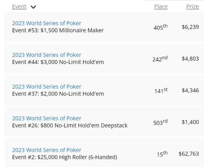 本场比赛之前,蒲蔚然在本届WSOP中已经5次闯入奖励圈,离决赛桌最近的一次是在赛事#2中获得了第15名。