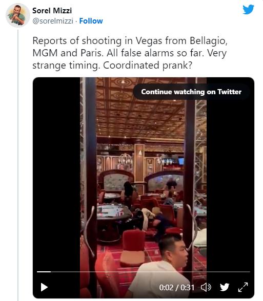 事情起因似乎是米高梅附近发生的一起事件被误以为是枪声,这引起了娱乐场中的顾客集体逃离,包括米高梅的扑克锦标赛区。