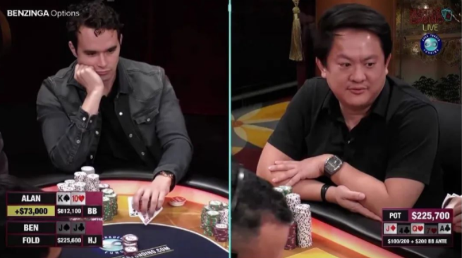 牌局发生在Hustler Casino Live的100/200(ante 200)常规桌,桌上的玩家包括Alan Keating、Ryan Feldman、Handz、Wesley和Ben Chung。