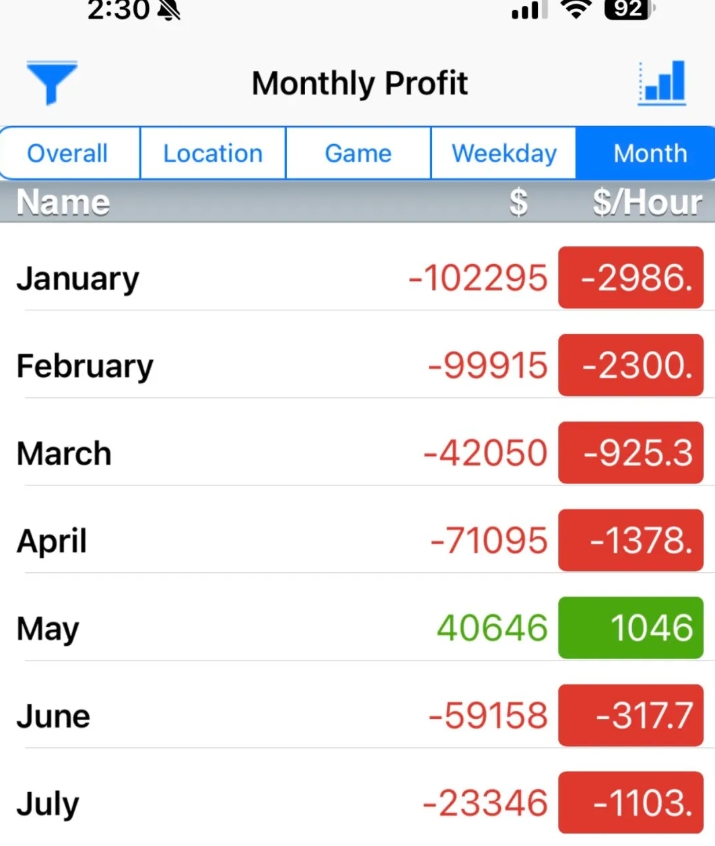 从他在X(原推特)上发布的数据可以看出,在年初的高额常规桌游戏中,Rampage损失惨重,到4月结束时,亏损就已超过30万美元。5月份4万美元的盈利虽然暂时缓解了困境,但拉斯维加斯夏天的到来,很快又让他的资金再次大幅缩水。
