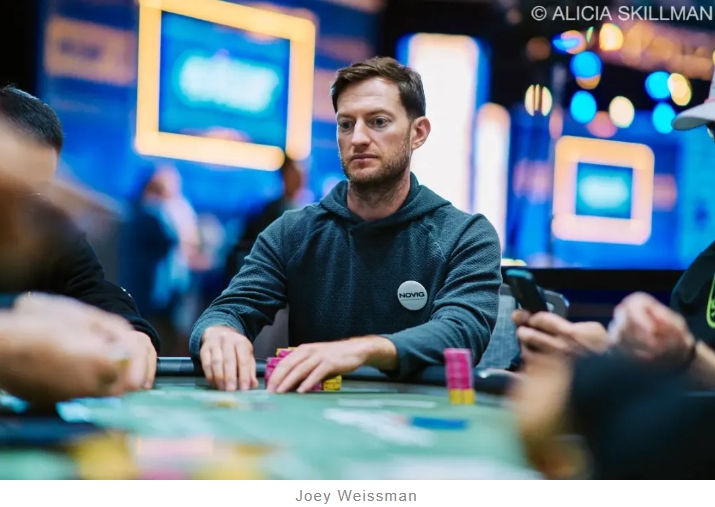 Weissman露出不可置信的表情,翻开手中的K♠K♦——他在翻牌中击中暗三条,却被转牌的更大的暗三条击败,痛失本届赛事迄今为止最大底池。