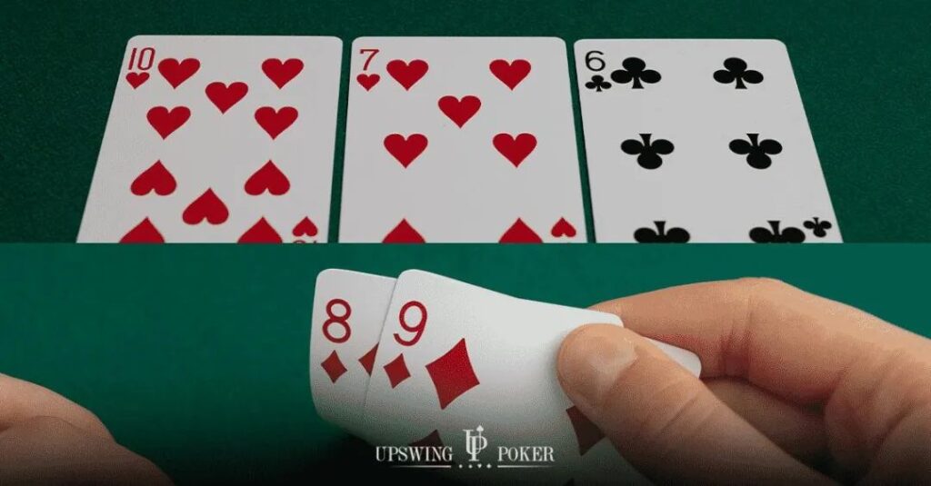 - Q♣J♥9♠翻牌面的T♦8♦(T代表10)