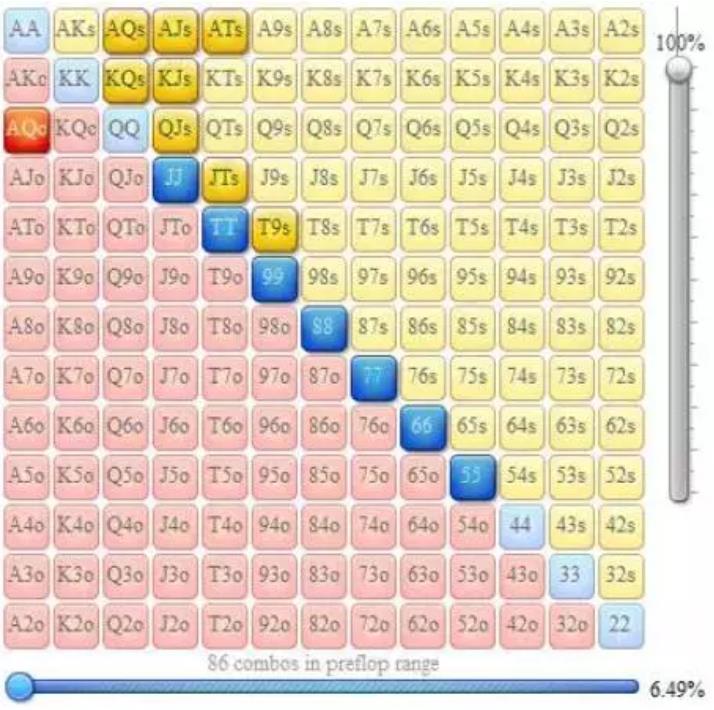 - 你有极好的翻后可玩性,它将为你提供许多有利可图的诈唬机会;