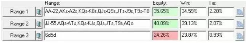 我们的6♦5♦对抗这两个范围的胜率如下: