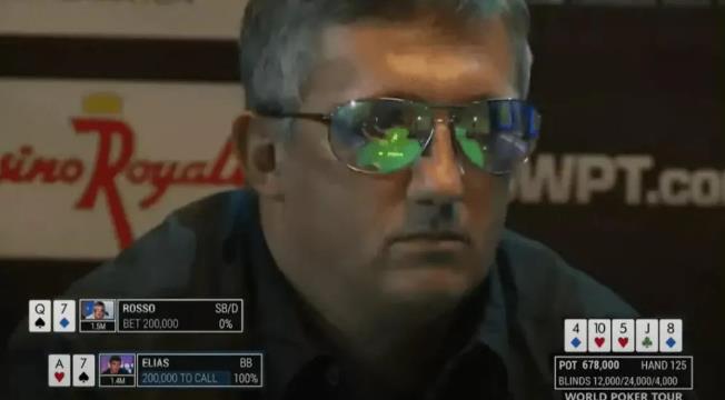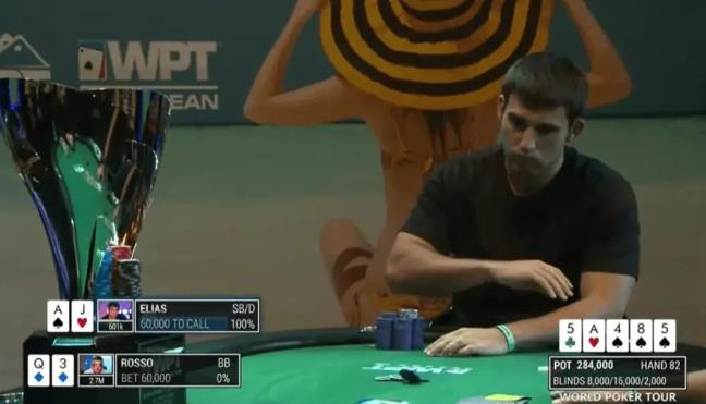 Elias相信自己关于下注尺度判断,决定跟注,在夺取WPT冠军的道路上赢得了一个大底池。