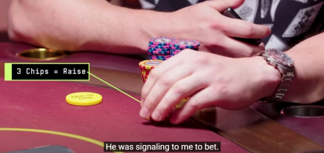 “改造”完成后,Greenberg安排了一场私人的小型牌局,桌上除了他和Tartaro外,还有两位毫不知情的玩家。Tartaro在手机上实时掌握了所有牌序后,通过摆弄不同数量筹码,暗示Greenberg应该弃牌、跟注还是加注。