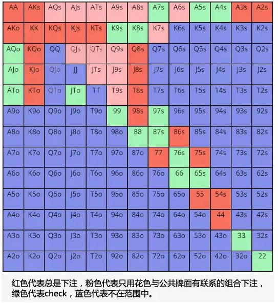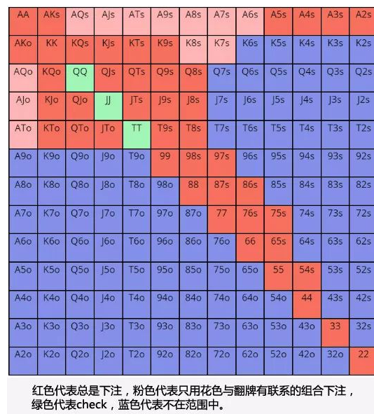 - 随着牌局过程从翻前向河牌圈推进,范围将逐渐变小。