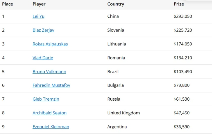 根据The Hendon Mob的数据,在获得这场胜利之前,余磊的现场锦标赛收入为 1,071,665美元,其中包括3月份赢得WPT韩国单日高额赛的135,186美元,创下了职业生涯最高纪录。