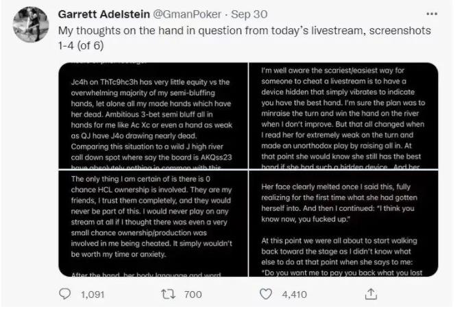 此外,他们通知扑克社区,他们将对此事进行彻底调查。